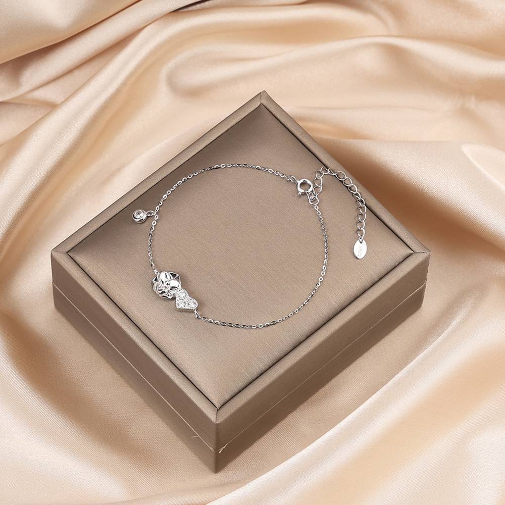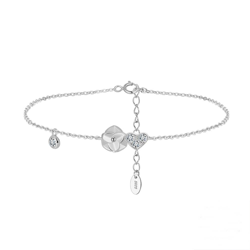Bratara din Argint ” Flower Heart ” placata cu Rodiu si asortata cu Cristale Zirconiu.