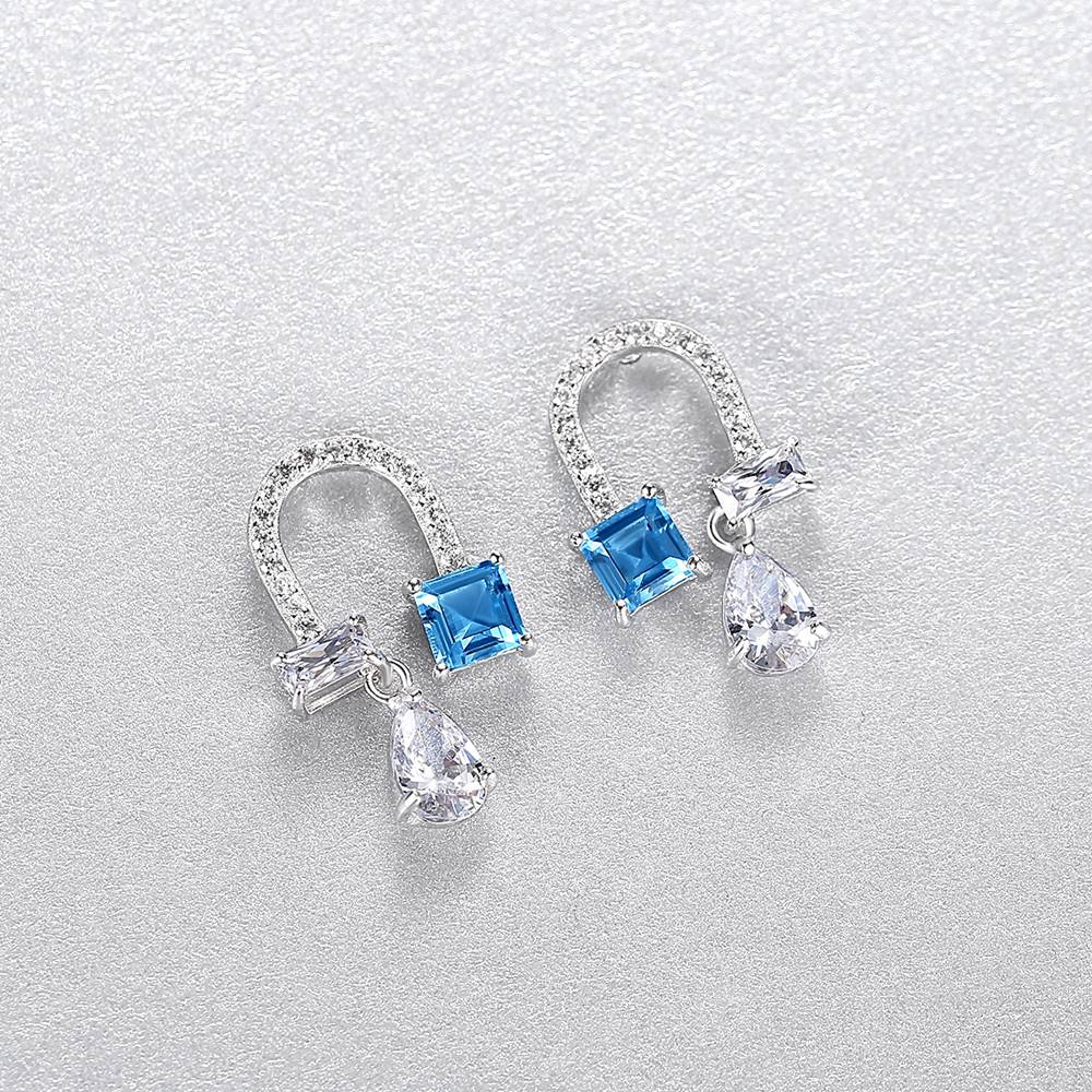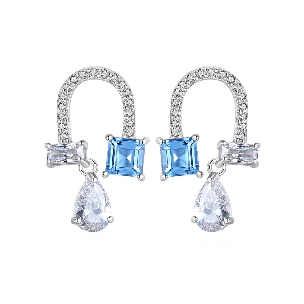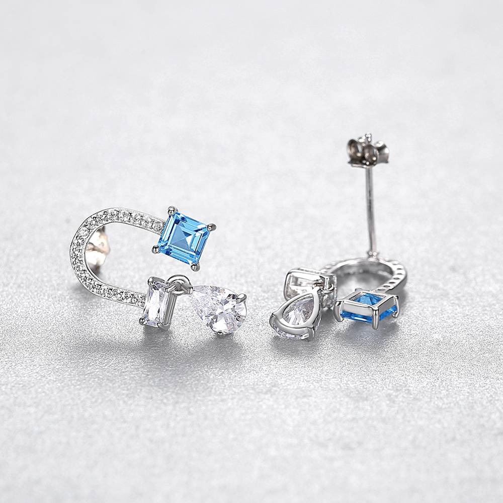 Cercei din Argint ” Blue Ariadne ” placati cu Rodiu, incrustati cu Cristale Zirconiu si asortati cu Topaz albastru.