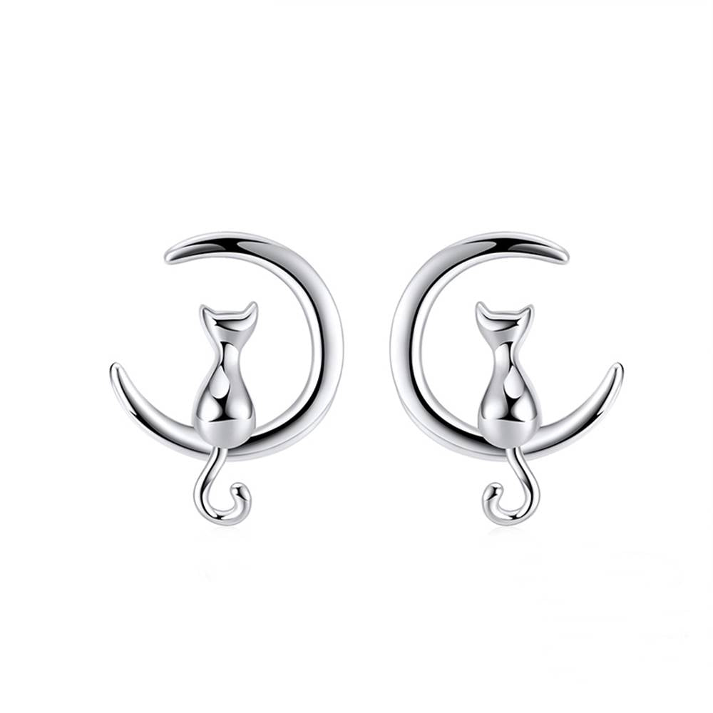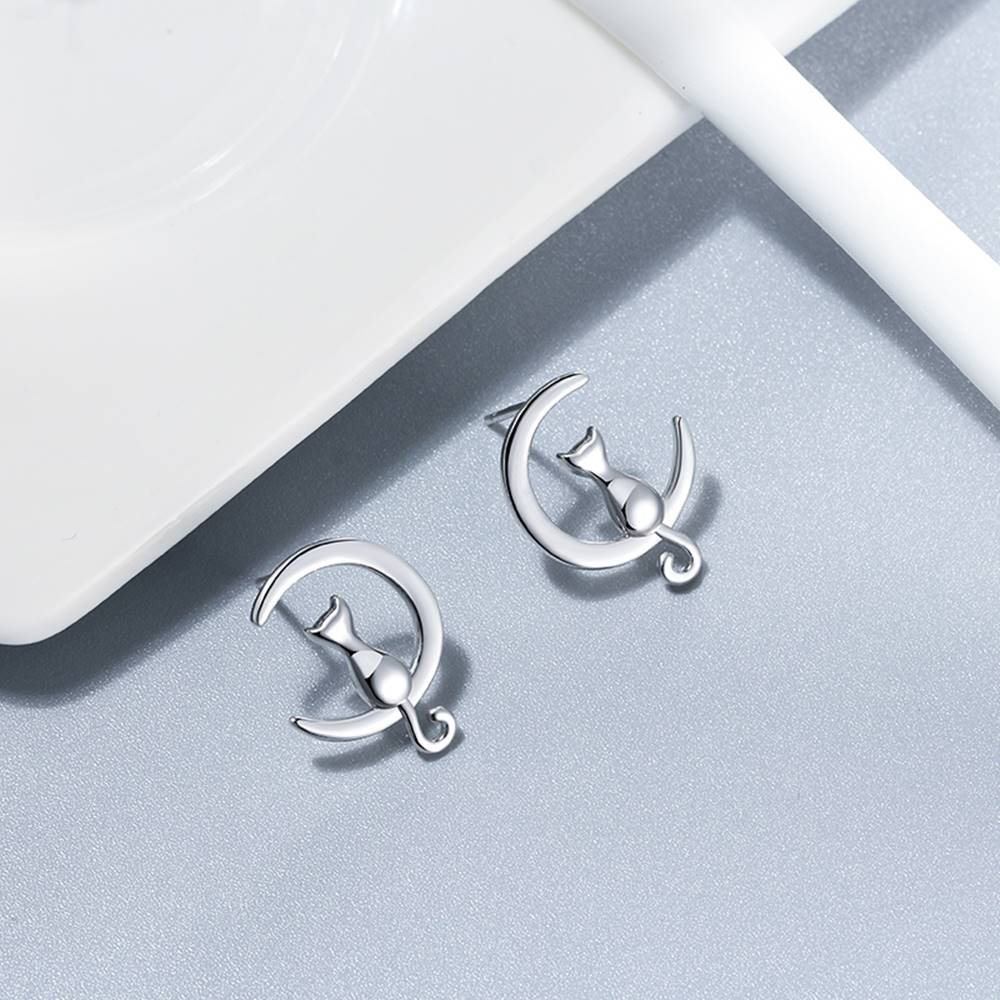 Cercei din Argint ” Moon Cat Silver ” placati cu Rodiu.