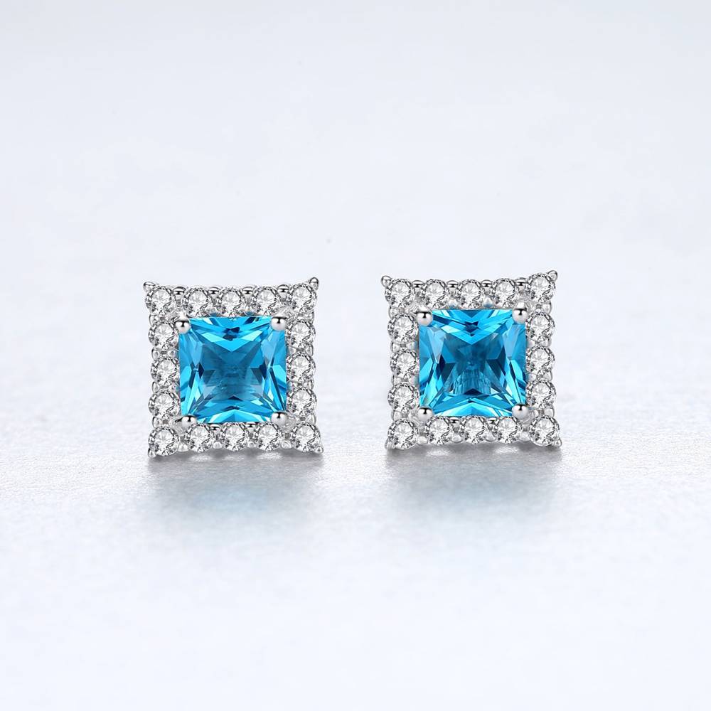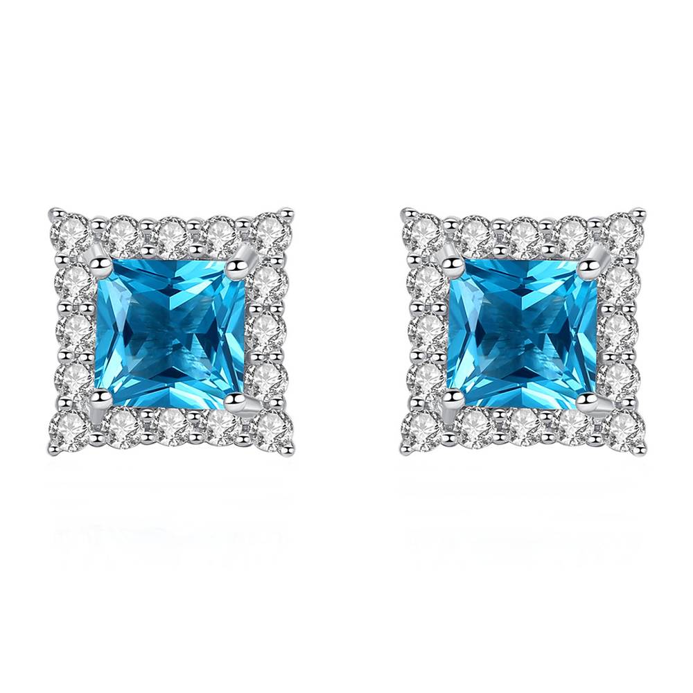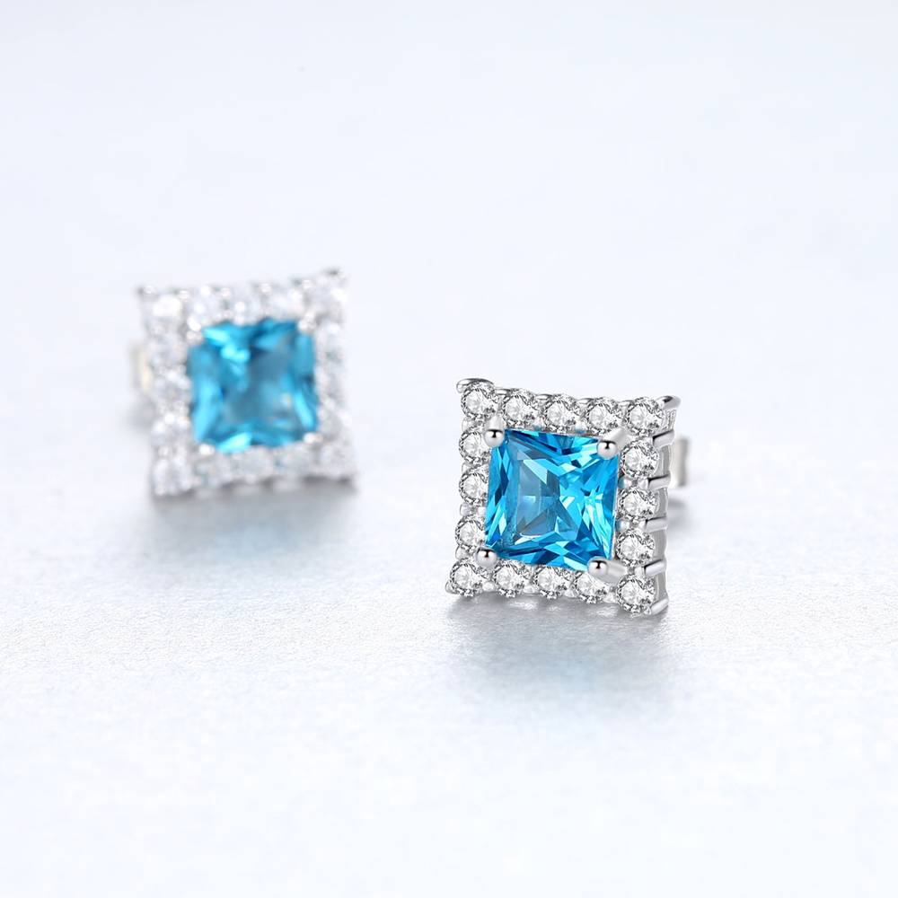Cercei din Argint ” Oris Topaz ” placati cu Rodiu, incrustati cu Cristale Zirconiu si asortati cu Topaz albastru.