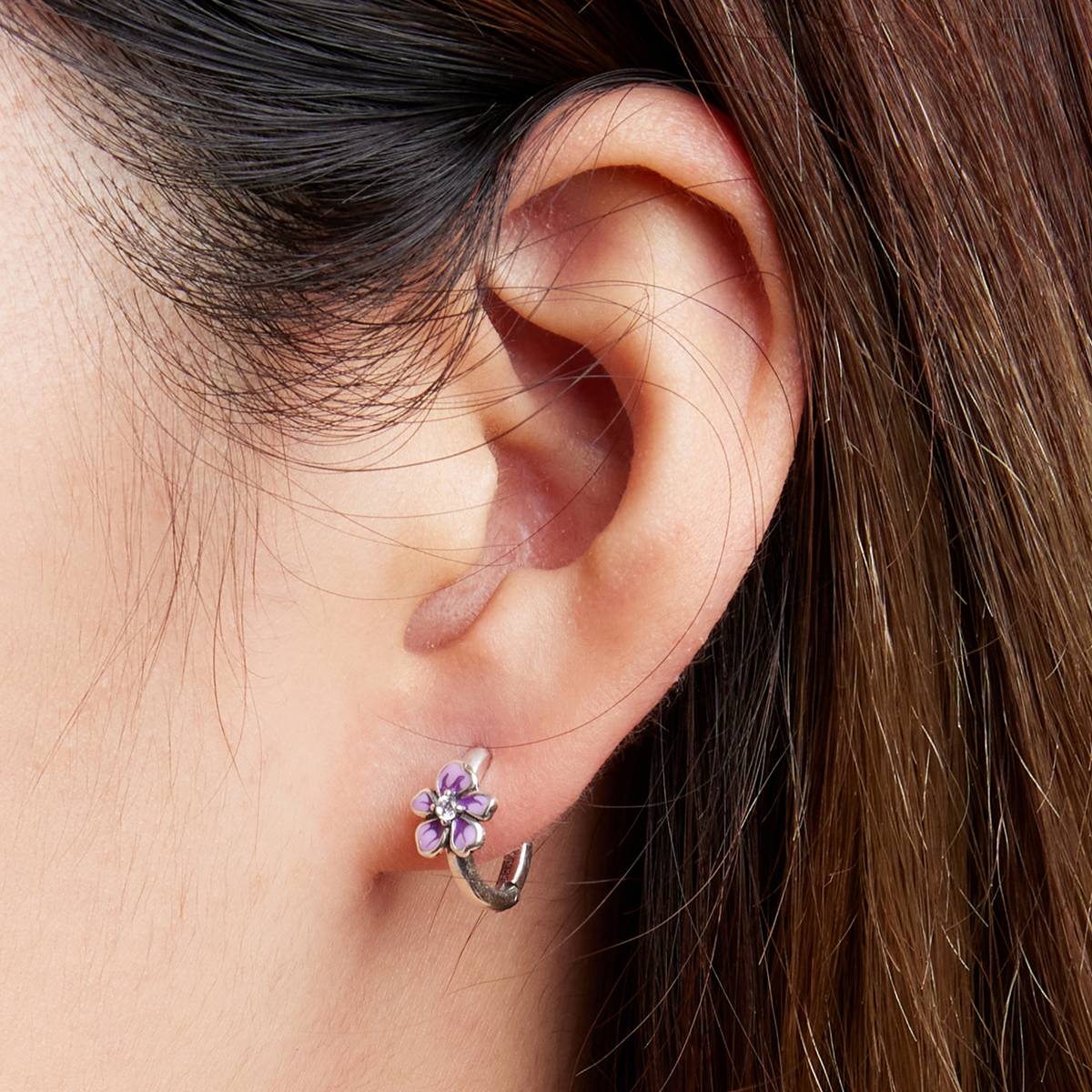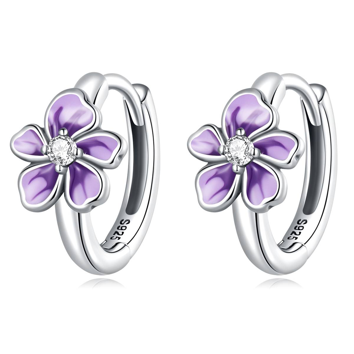 Cercei din Argint ” Round Gardens ” placati cu Rodiu, incrustati cu Cristale Zirconiu si asortati cu Email.